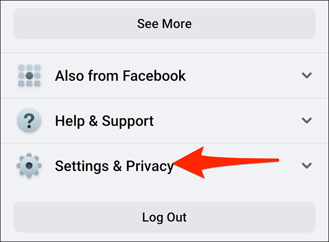 向下滚动打开的“菜单”屏幕,然后点击“设置和隐私”。