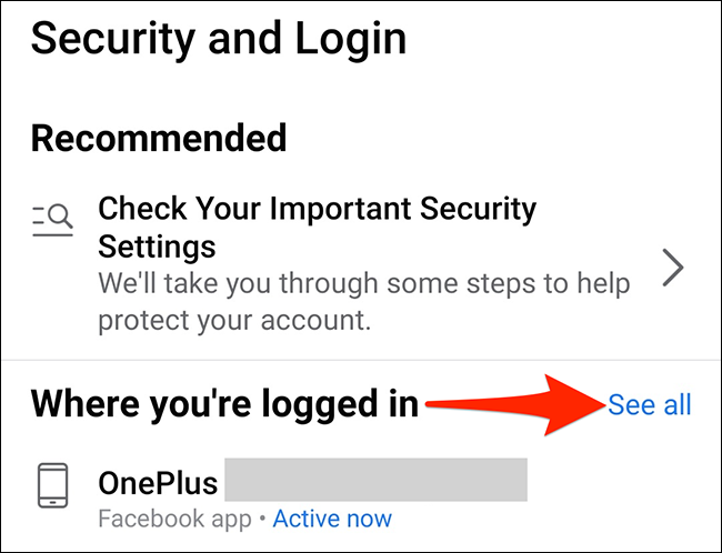 在“安全和登录”页面上,在“您登录的位置”标题旁边,点击“查看全部”。