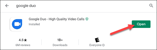 接下来,搜索“Google Duo”并点击“安装”。