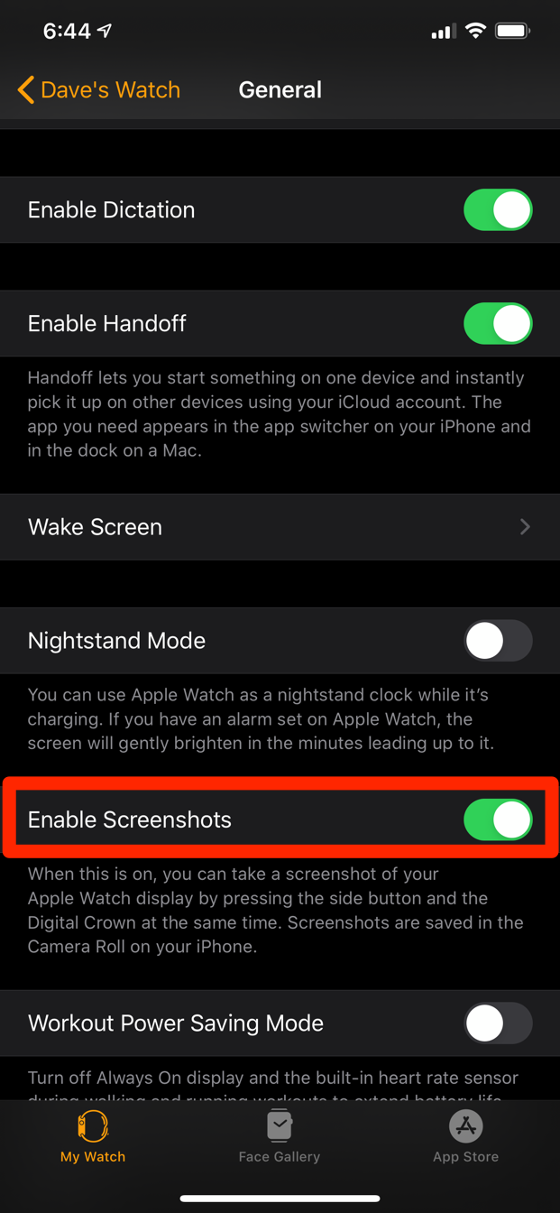 在Apple Watch应用中打开屏幕截图以开始获取屏幕截图。