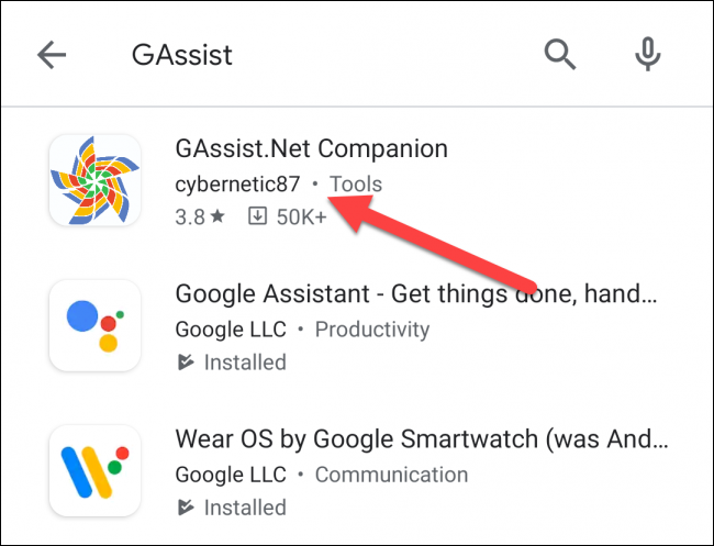 在您的 Android 智能手机上导航到 Google Play 商店。搜索“GAssist”,然后通过cybernetic87选择“ GAssist.Net Companion ”。