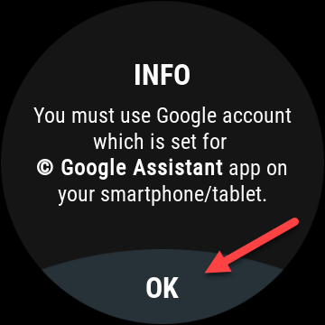 如果您正在登录,该应用会告诉您在手机或平板电脑上使用与 Google 助理关联的帐户;点击“确定”。