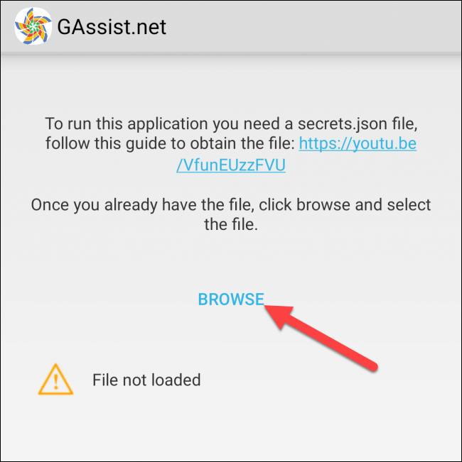 接下来,打开智能手机上的 GAssist 应用程序,然后点击“浏览”。