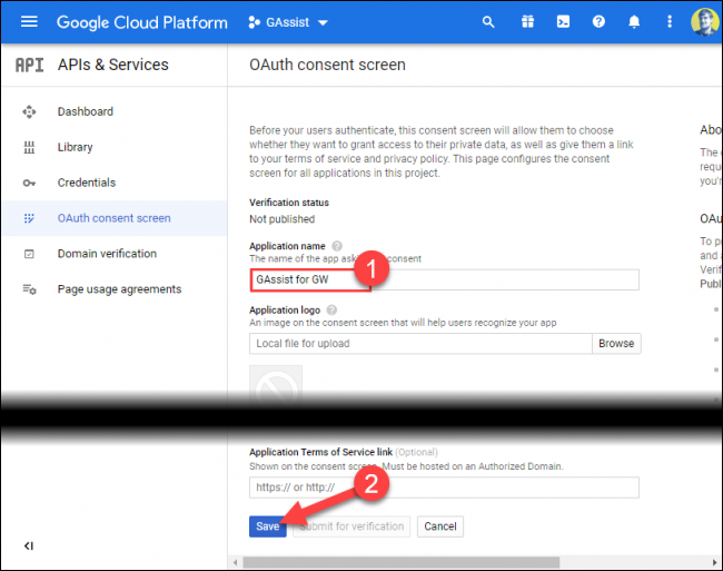 在“应用程序名称”文本框中输入名称,然后单击页面底部的“保存”。