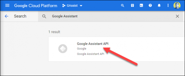 结果将在您键入时显示。点击“Google Assistant API”选项。