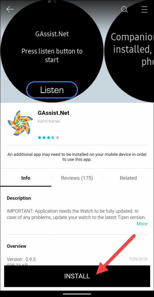 首先要做的是 从 Galaxy Store安装 G-Voice Assistant应用程序(从免费版本开始)。您可以通过手机上的Galaxy Wearable 应用程序安装它。