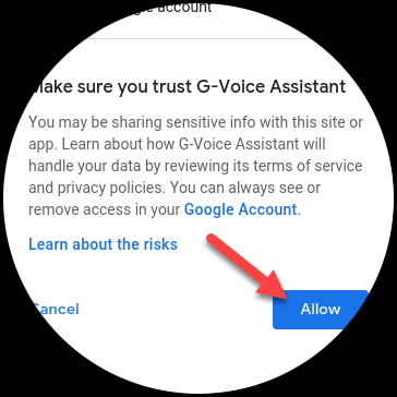 接下来,点击“允许”以授予该应用在您的帐户中使用 Google 助理的权限。