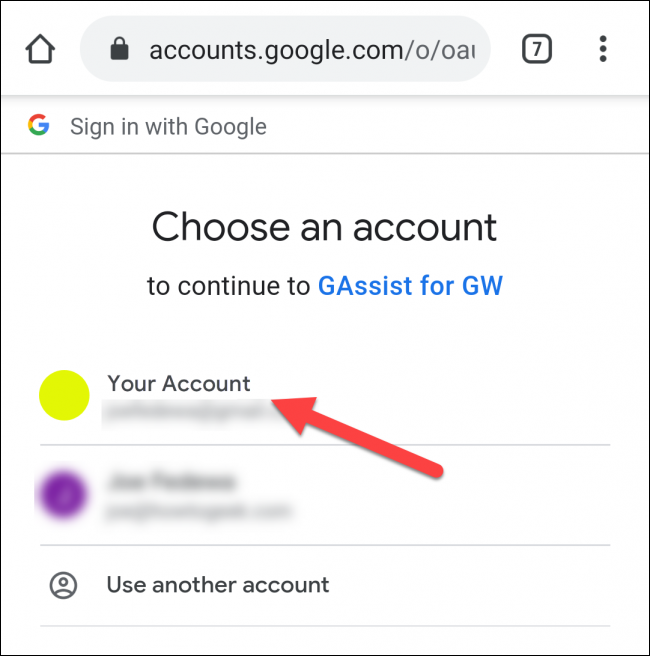 选择“身份验证”以授予 GAssist 访问您的 Google 帐户的权限。