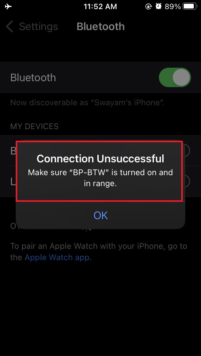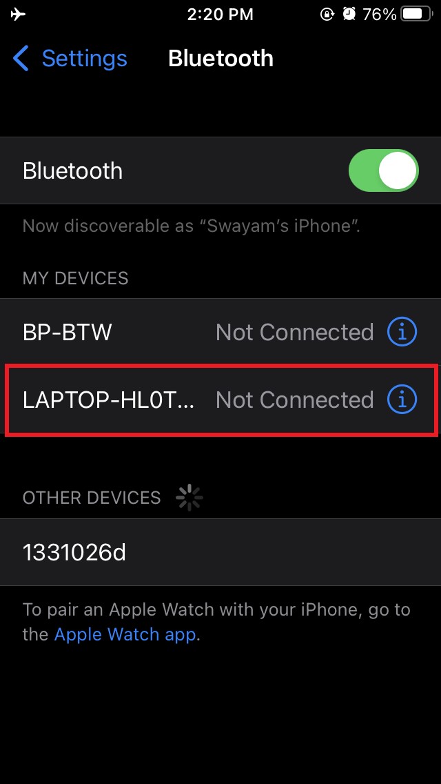 如果蓝牙设备已经连接到另一台设备,它将无法与 iPhone 建立连接。因此,您必须断开蓝牙设备与其他设备(例如 PC 或其他智能手机)的连接,并将其与 iPhone 连接。