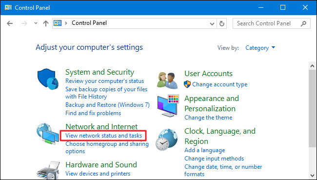 在“网络和 Internet”类别中,单击“查看网络状态和任务”链接。