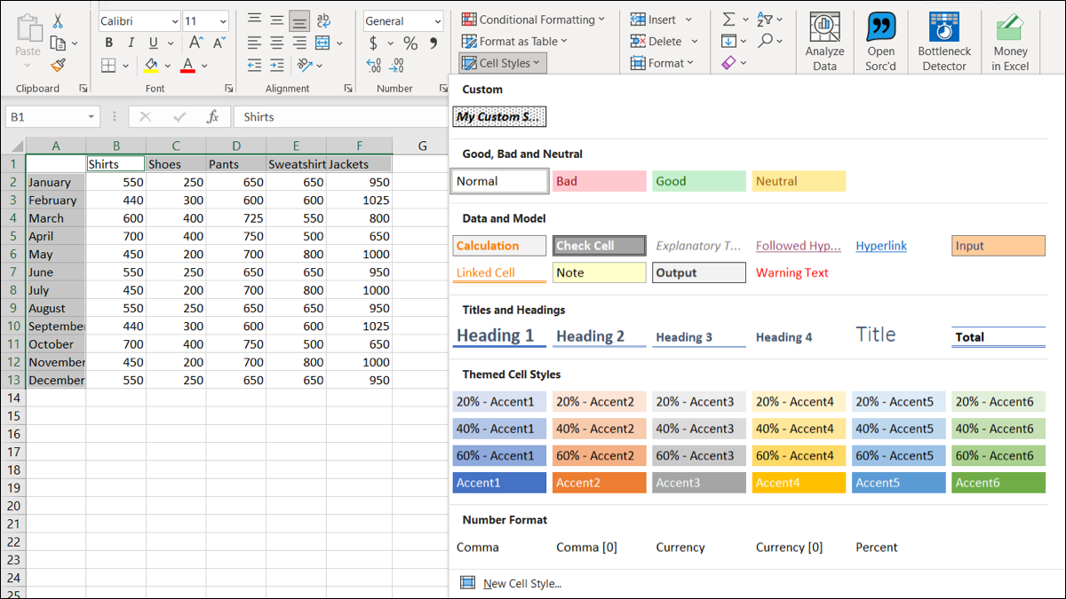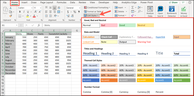 Excel 在提供许多您可以使用的预制单元格样式方面做得很好。这些涵盖了从标题和标题到颜色和口音再到货币和数字格式的所有内容。