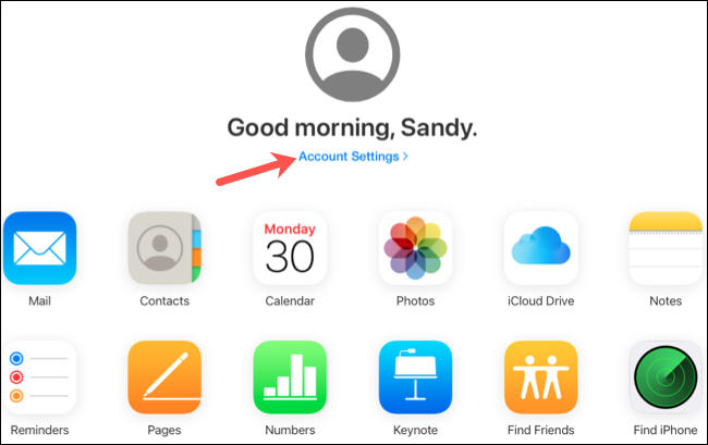 使用您的 Apple ID 和密码登录您的 iCloud 帐户,然后单击“帐户设置”。