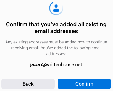 警告:不要添加您的家人在该域上使用的电子邮件地址,因为这会将地址附加到您身上。
