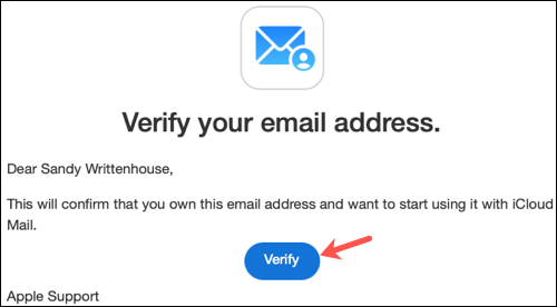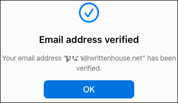 然后,返回 iCloud 屏幕并在验证电子邮件地址后单击“确定”。