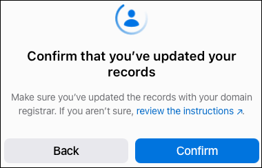 最后,单击第 4 步的“完成设置”,然后单击“确认”您已成功更新域记录。