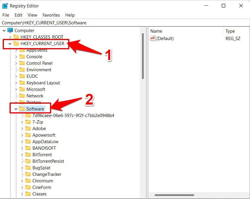 - 现在,从左侧菜单栏中展开HKEY_CURRENT USER部分。