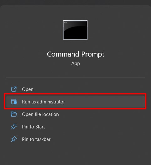 - 首先,转到“开始”菜单,搜索 CMD 并以管理员身份启动它。