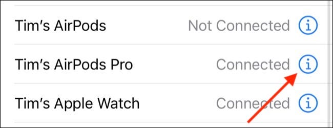 要测试是否贴合,请将 AirPods Pro 放在耳朵中,然后抓住与之配对的 iPhone 或 iPad。前往“设置”>“蓝牙”并点击 AirPods Pro 旁边的“i”,然后点击“Test Ear Tip Fit”以开始测试。