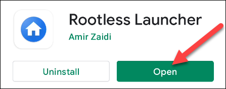 首先,从 Android 设备上的 Play 商店下载 Rootless Launcher。安装后“打开”应用程序。