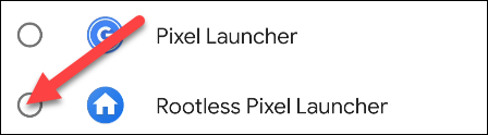 您需要将 Rootless Launcher 设为“默认”家庭应用。为此,请打开“设置”并搜索“家庭应用”。从列表中选择“Rootless Launcher”。