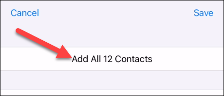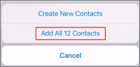 现在,您可以单独选择联系人以创建新联系人或与现有联系人合并。要全部转移,请点按顶部的“添加所有 # 个联系人”。