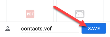 您将被带到文件管理器,您可以选择要保存 .vcf 文件的位置。完成后点击“保存”。