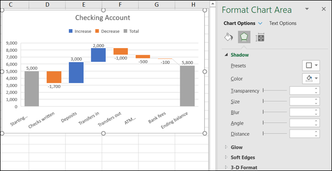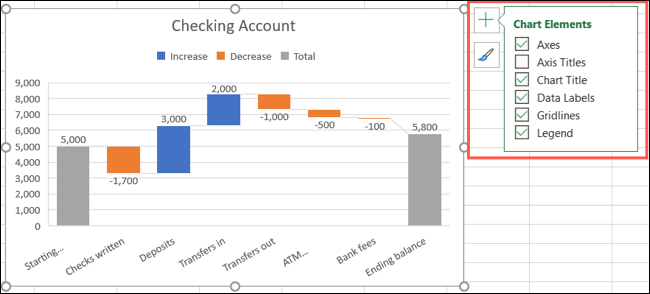 如果您的数据完全适合瀑布图以获得有用的视觉效果,让我们开始吧!在本教程中,我们将使用支票帐户作为示例。