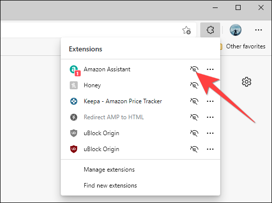 选择扩展名旁边的eye-reveal 图标以将其显示在工具栏上。