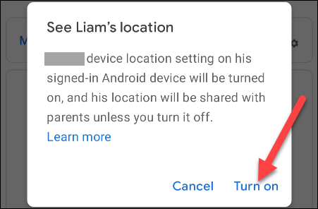 一条弹出消息将说明您孩子的设备将开启定位功能,并且他们的位置将与您共享,直到您将其关闭。点击“打开”继续。