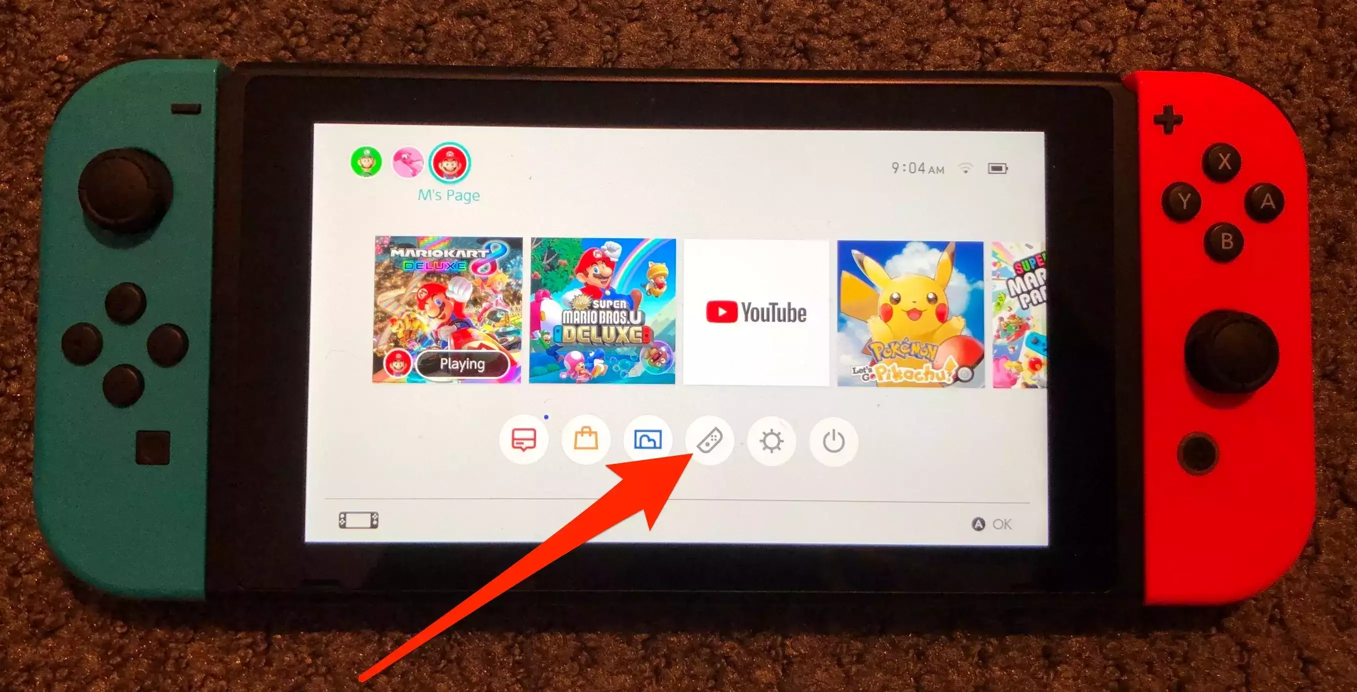 1.从 Switch 的主页,向下滚动到“控制器”选项卡 – 它看起来像一个灰色的 Joy-Con – 然后单击它。