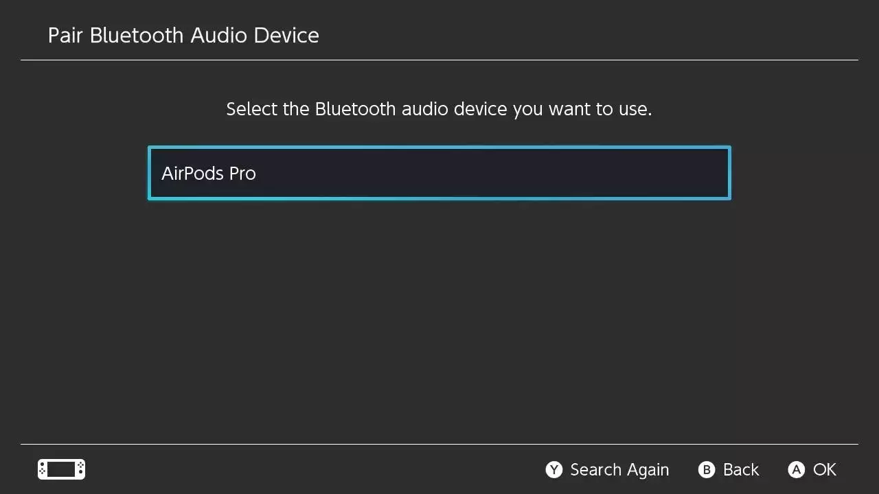 4.当您的耳机在 Switch 上显示为一个选项时,选择它们并让设备连接。