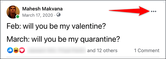 在帖子的右上角,单击三个点。