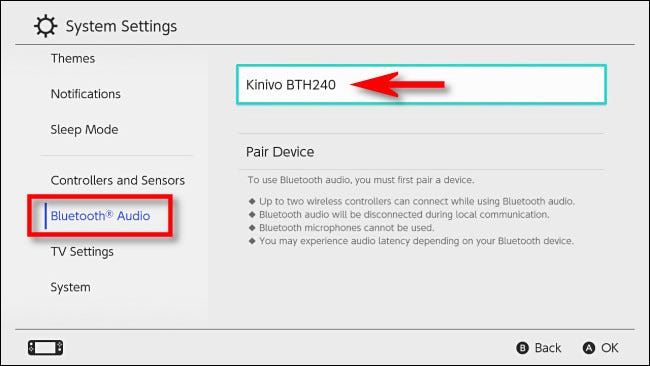 当您在 Switch 上使用蓝牙音频时,有一些限制。首先,在配对蓝牙音频设备时,您最多只能使用两个无线控制器。其次,如果您使用本地通信(通常用于临时无线多人游戏),蓝牙音频将无法工作。第三,Switch 不支持蓝牙输入设备,例如麦克风(为此,您需要一个特殊的应用程序或有线连接)。Nintendo 还警告您可能会遇到音频延迟,具体取决于您的蓝牙设备。
