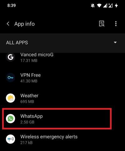 - 找到WhatsApp并单击它。