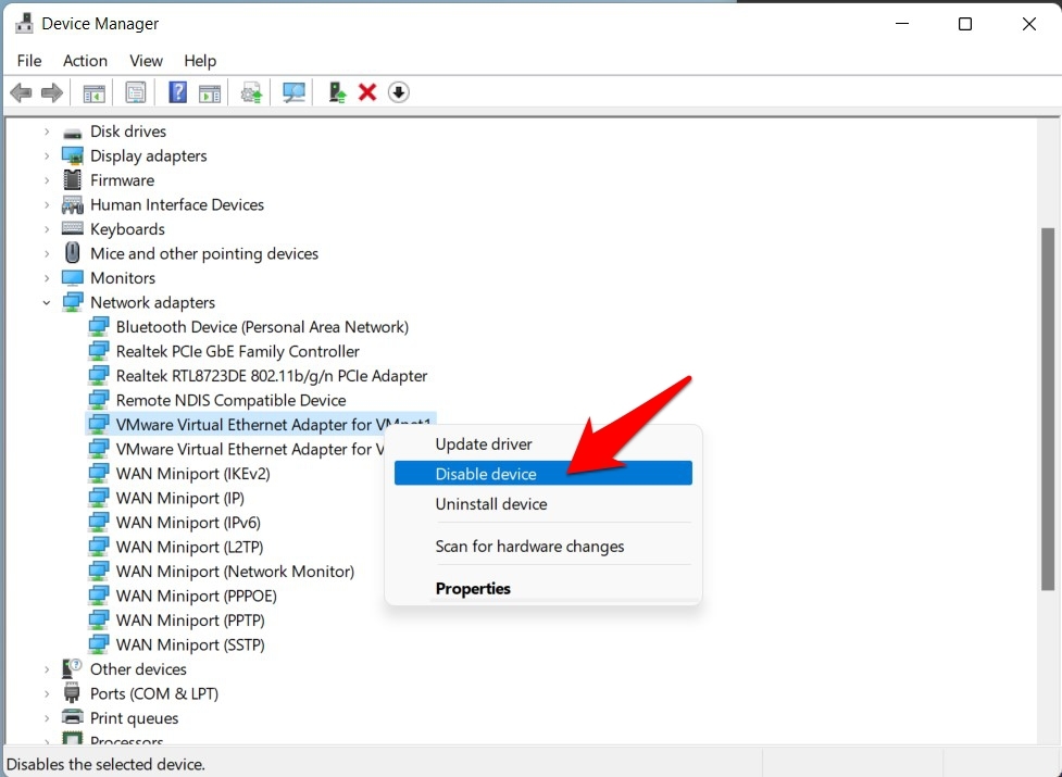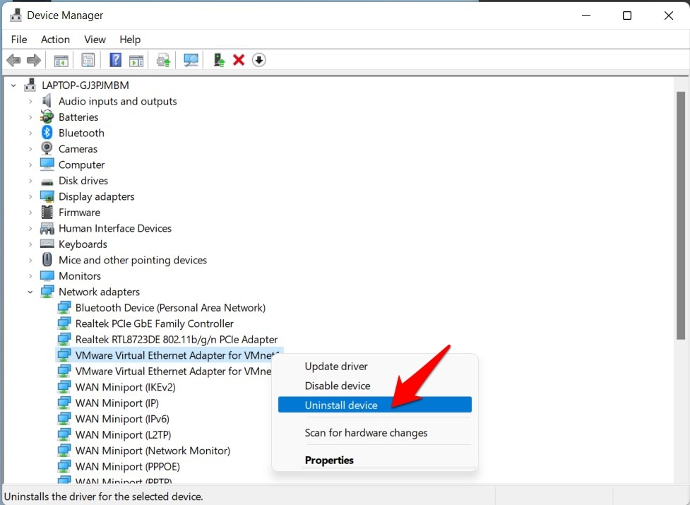 如果网络适配器驱动程序或其配置文件损坏,那么简单地将其更新为最新版本将没有任何好处。相反,您应该考虑采取从 PC 上卸载它们然后重新安装的核心方法。这是如何做到的: