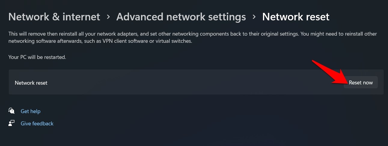 如果上述方法都没有说明成功,那么您应该考虑将 PC 的网络设置重置为出厂默认设置,即它是如何出厂的。以下是相同的必需说明: