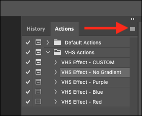 单击“动作”面板右上角的菜单按钮(四条小水平线)。你会得到一个下拉菜单。