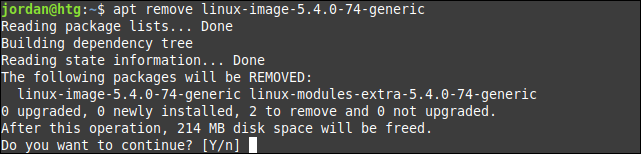 替换kernel-name为您选择的内核。在继续之前,系统会提示您输入密码。然后,您需要通过键入“y”并按 Enter 来确认删除。