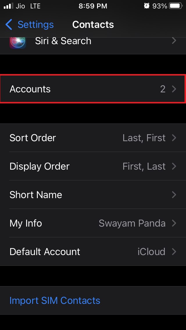 现在,检查 Google 通讯录是否与 iPhone 同步。