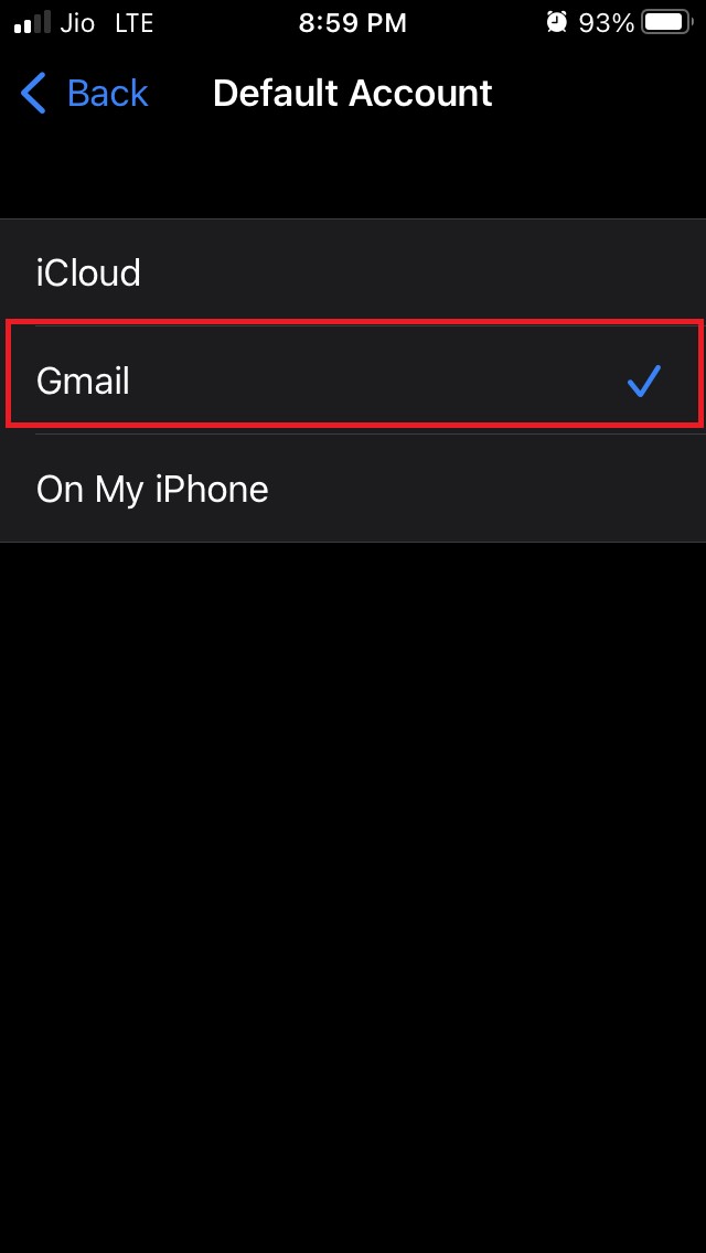 - 点击 Gmail将其设置为 iPhone 的默认帐户。(默认情况下,它会像您在 iPhone 上一样设置为 iCloud)