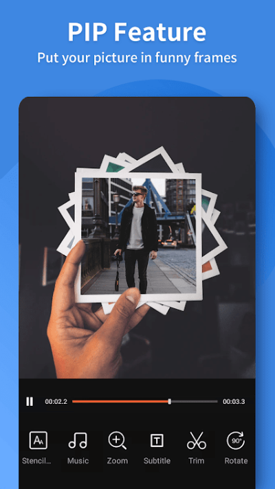 您可以获得所有必要的基本视频编辑工具,例如修剪、拆分、剪切、复制、模板、滤镜、过渡和视频效果。此外,该应用程序还可让您创建模糊背景、插图、动画贴纸、双重曝光效果和拼贴。
