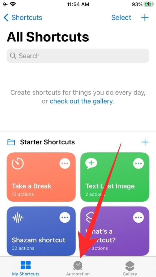有了这些,我们就可以开始使用 Shortcut 应用程序在你的 iPhone 上创建自动化,这让 Siri 在插入时说话。从你的主屏幕或应用程序打开你 iPhone 上的 Shortcut 应用程序,然后点击“自动化’ 选项卡在屏幕底部。