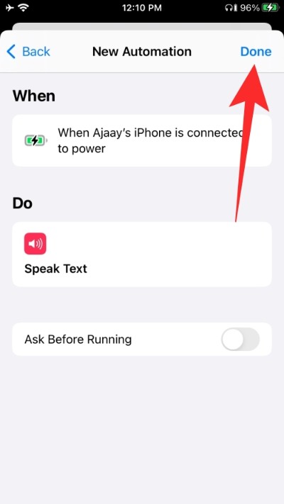 您现在可以点击右上角的“完成”以保存更改。您的新快捷方式自动化现在将显示在快捷方式应用程序内的“自动化”选项卡内。