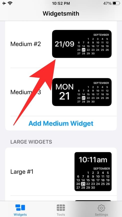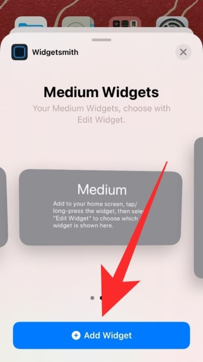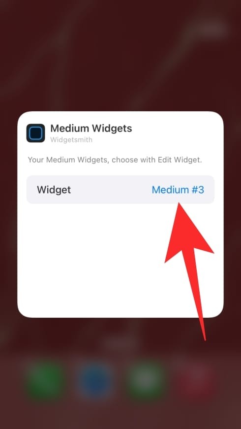 如果 Widgetsmith 在主屏幕上应用先前创建的小部件,请在小部件仍在摇晃时点击小部件,点击“小部件”选项并从屏幕上的可用选项中选择您新创建的小部件。