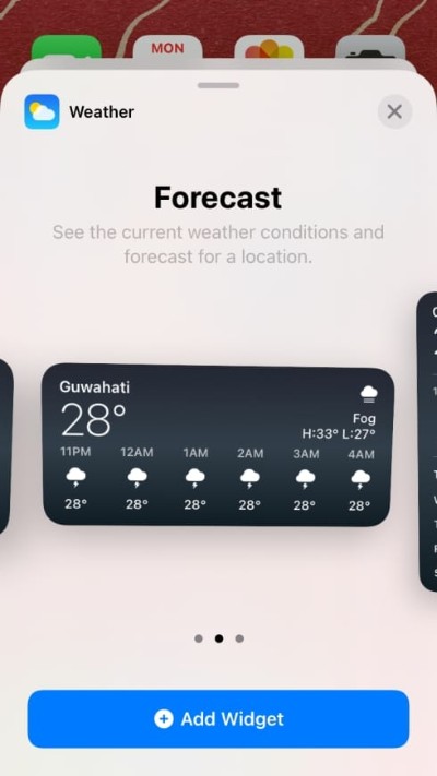 确定要添加的小部件后,点击它,然后在主屏幕上选择要为其设置的大小。您可以通过在此屏幕上向左或向右滑动来选择所需的大小,在为小部件选择首选大小后,点击底部的“添加小部件”按钮。