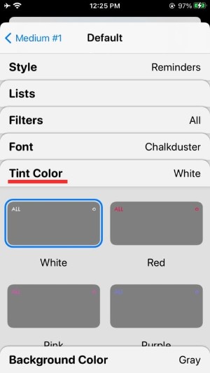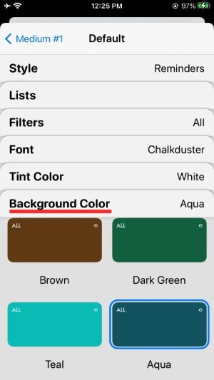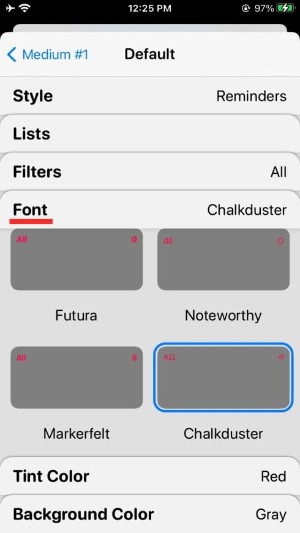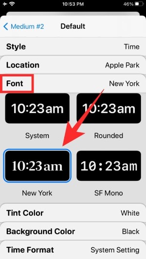 您可以通过选择不同的选项(字体、色调颜色和背景颜色)进一步自定义小部件。要设置不同的值或选择一个选项,您必须点击这些部分中的每一个,然后选择一个选项,如下所示。