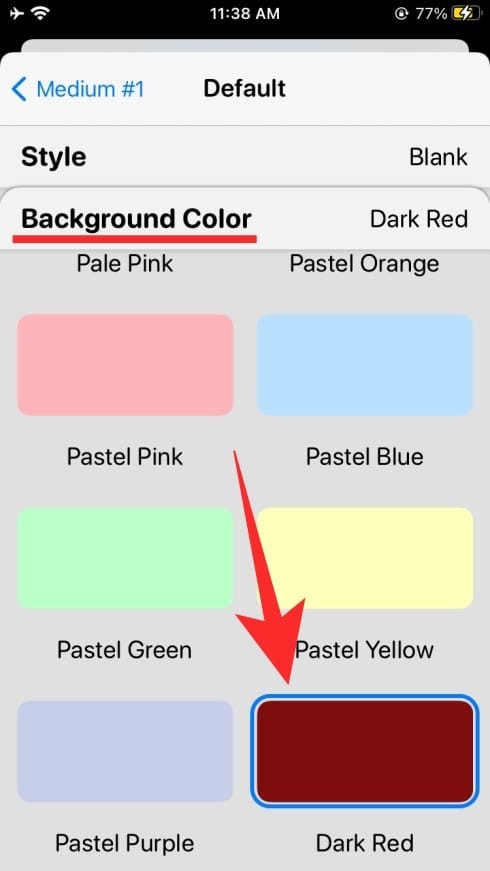 如果您选择了自定义文本样式,则可以通过选择不同的选项(文本、字体、色调颜色和背景颜色)进一步自定义。要设置不同的值或选择一个选项,您必须点击这些部分中的每一个,然后选择一个选项,如下所示。