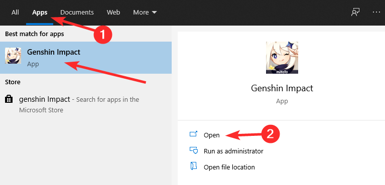如何:首先打开 Genshin Impact Launcher。要打开它,请点击键盘上的 Windows 按钮或屏幕左上角的 Windows 图标,然后键入 Genshin Impact。如果需要,切换到应用程序选项卡。