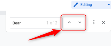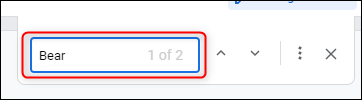 您可以单击搜索框右侧的向上或向下箭头,以在该词或短语出现在文档中的实例之间导航。