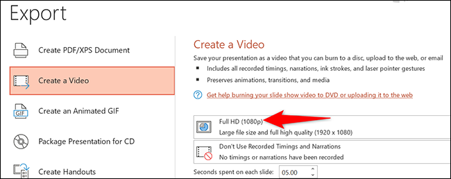 在“导出”菜单的右侧,您现在将看到“创建视频”部分。在本节中,您将为视频文件定义选项。